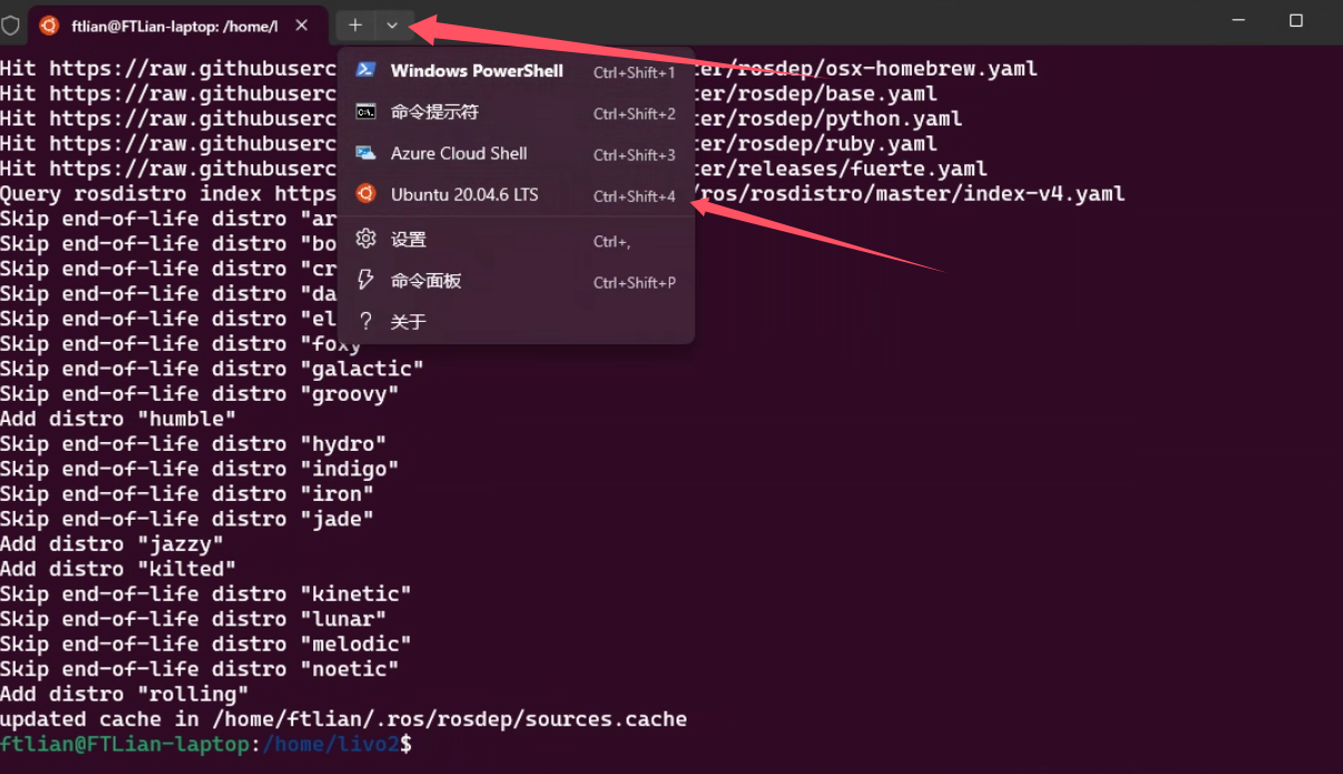 Add distro "rolling" updated cache in /home/ftlian/.ros/rosdep/sources.cache”